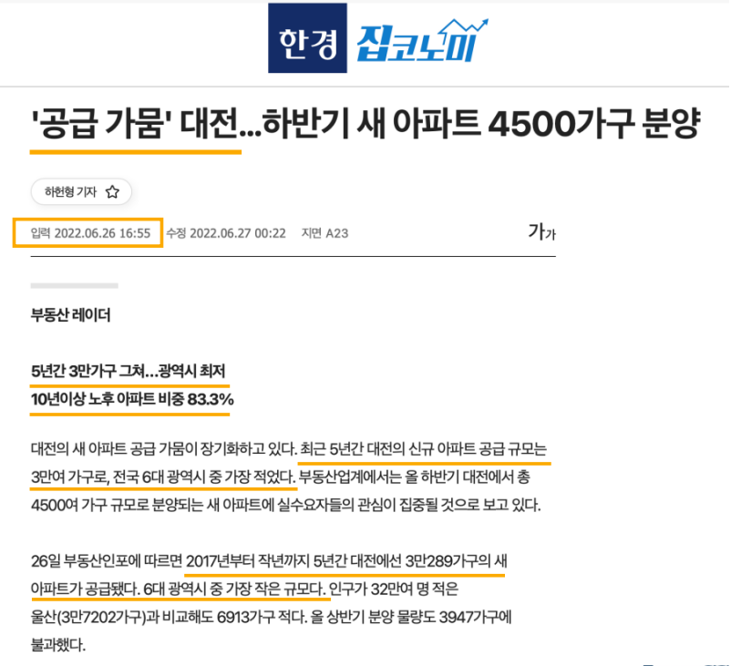 대전은 지방 광역시 중에서도 공급이 부족한 도시에 속합니다. 과거의 데이터를 보면 대전은 공급부족으로 많은 어려움을 겪고 있다는 사실을 알 수 있습니다. 또 한 가지 특이한 사항은 대전은 전국 도시 중 노후화된 아파트 비율이 가장 높다는 것입니다.