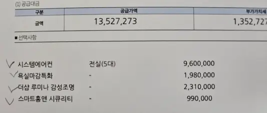 비용 측면에서 한 가지 더 고려해야 할 사항은 내가 선택하고자 하는 옵션이 시중가와 얼마나 차이가 있을지 가성비를 비교해 보는 것도 좋습니다. 예를 들어 욕실마감특화를 선택하고 싶은데, 개인적으로 인테리어샵에 의뢰하는 비용과 옵션을 선택하여 시공하는 것의 가성비를 비교하는 것입니다.