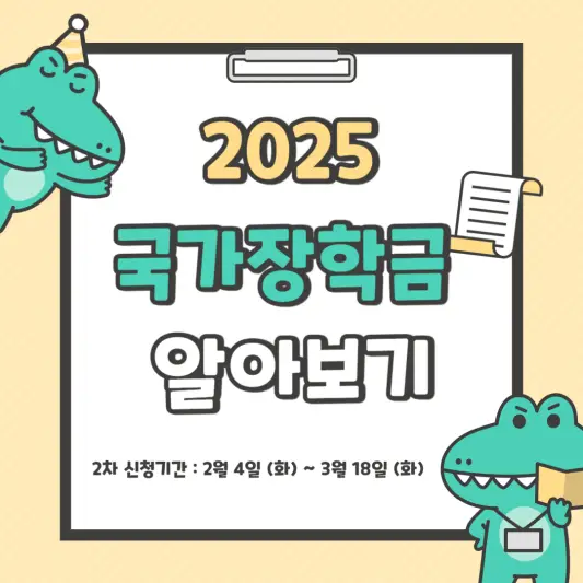25년 국가장학금 2차 신청기간은 2025년 2월 4일 화요일부터 3월 18일 화요일, 18:00까지입니다. 신청대상은 대학교 신입생, 편입생, 복학생, 그리고 1차 신청을 놓친 재학생입니다. 25년에는 소득구간